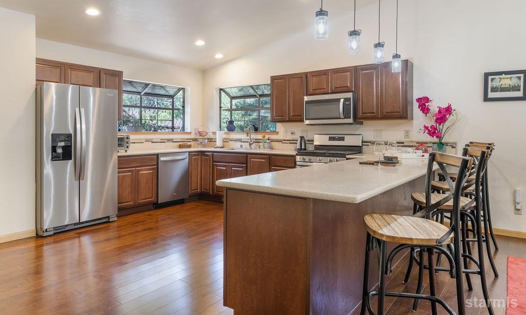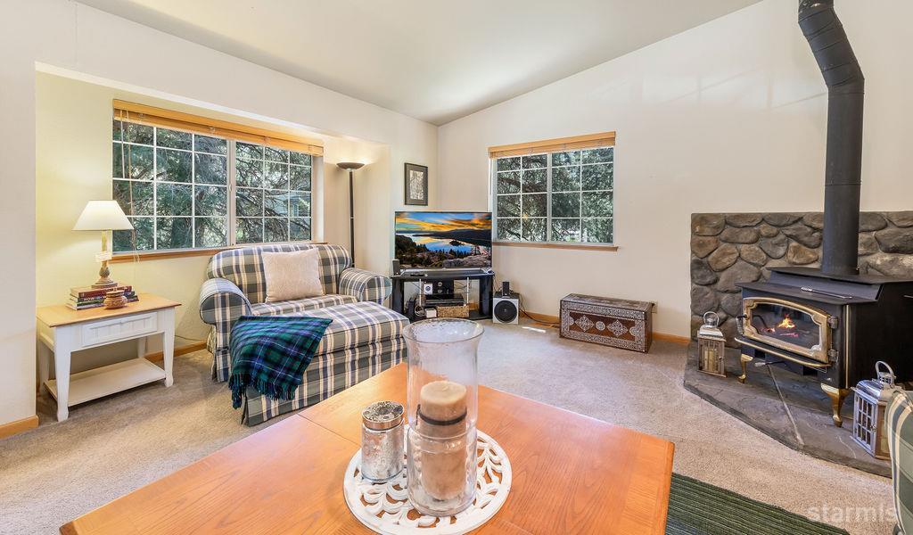 Christmas Valley is one of Lake Tahoe's best-kept secrets -- peacefully quiet, yet surrounded by premier recreation and outdoor adventure. Fly fishing, bouldering, backcountry skiing, biking, and hiking trails are all close by, with mountain views and the Upper Truckee River just steps away. This home features desirable upstairs living with vaulted ceilings, dual-pane windows, and abundant natural light. Wood flooring and a cozy wood stove create a warm mountain feel, while the open kitchen flows seamlessly into the dining and living areas -- ideal for both everyday living and entertaining. The main level includes a private primary suite with generous closets and an updated bath. Downstairs offers two guest bedrooms, a full bathroom, a dedicated laundry room, and an extra-large game room for flexible living or recreation space. Forced-air heating, a long driveway with ample parking, and 2018 kitchen and primary bath remodels add comfort and value. Set on a large corner lot across the street from the Upper Truckee River, this home is equally suited as a peaceful retreat or an adventure basecamp -- an exceptional opportunity to embrace the Tahoe lifestyle.