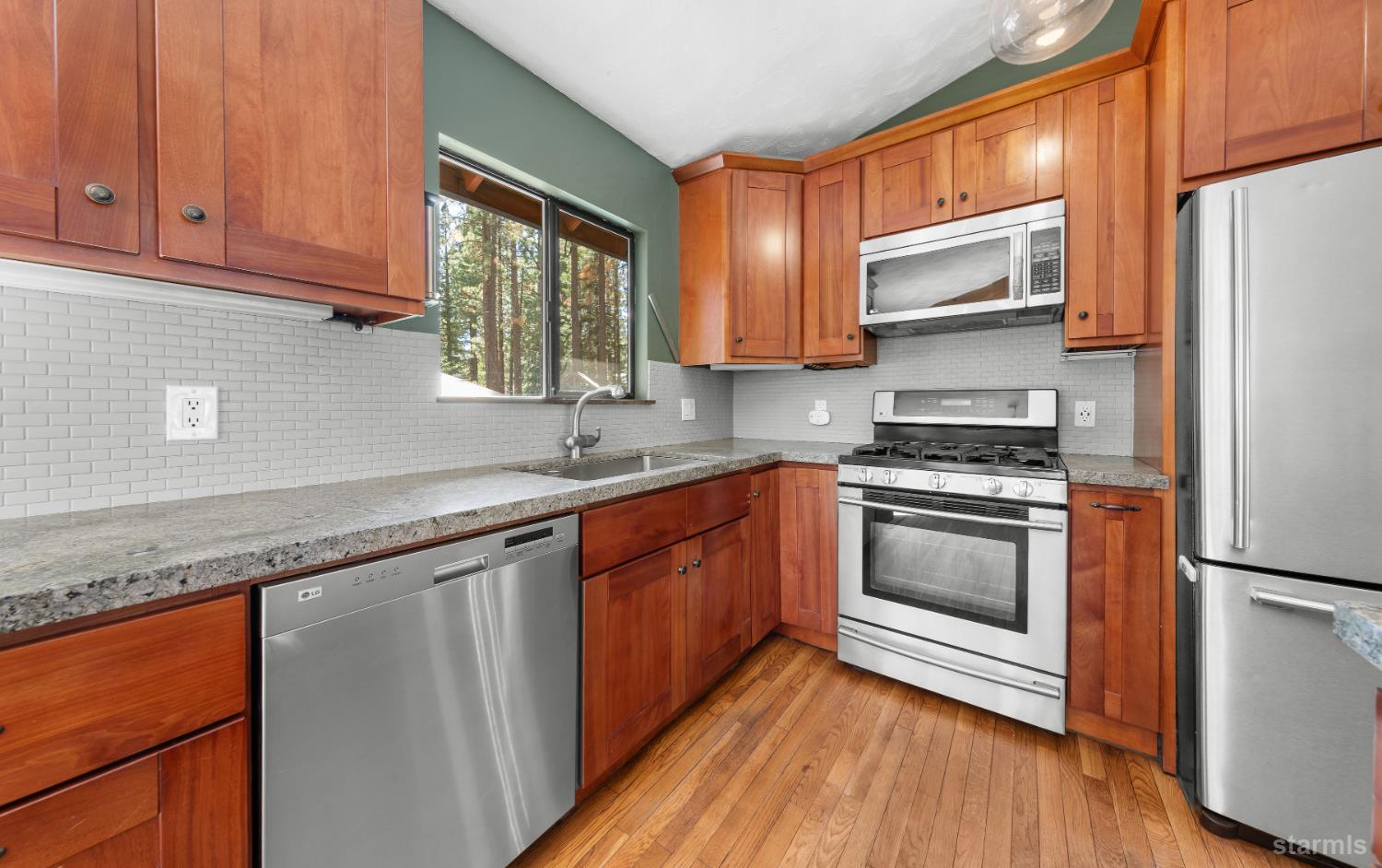 If you are looking for your mountain retreat in the woods, look no further. This home offers some very desirable Tahoe features. 1) North Upper Truckee neighborhood 2)This home sits on a large 10,000+ s.f. fenced lot. 3) Surrounded on the right, several lots in the rear, as well as slightly to the left, across the street, of forest service land = privacy 4)Washoe State Park and the Upper Truckee River are within walking distance 5)This home offers a Great Room with vaulted ceilings 6) An attached one car garage w/opener and a large detached shed. 7) The back and front yard is your blank canvas for outdoor living, complimented by a large deck and covered front porch. 8) A 50yr Comp Roof w/approx. 25-30 yrs left. 9) The kitchen offers beautiful honed granite slab counters & cherry wood cabinets. With a small foot print and 25% coverage allowed on this parcel, imagine the possibilities and/or continue improving what is here, a cozy mountain home with a private, flat & sunny setting.